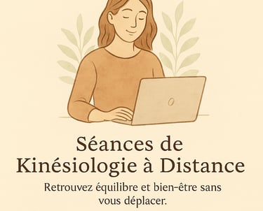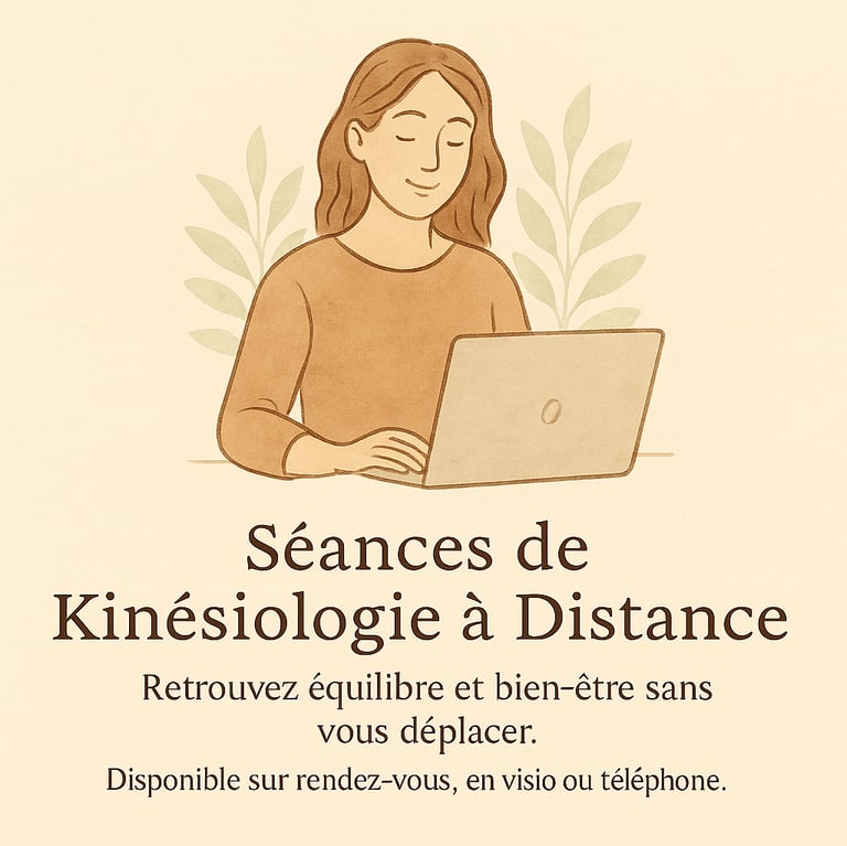 Où que vous soyez, profitez d’un accompagnement en kinésiologie sans vous déplacer. Grâce au test musculaire et aux outils énergétiques, les séances à distance offrent les mêmes bénéfices qu’en cabinet : libération du stress, apaisement émotionnel et rééquilibrage global.